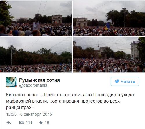 3. Infolgedessen begannen heute in Chisinau Massenproteste mit einer Beteiligung von zehntausenden Menschen. Erstens ist festzuhalten, dass der „Maidan“ kein pro-russischer ist. Jedoch ist der Ton in seinem Wesen ein Geschrei über den Korruptionssumpf und die „europäische Integration“. Einiges ruft die Situation in der Ukraine zurück, wo der „Euromaidan“ in hauptsächlich Anschuldigungen gegen Janukowitsch und Asarow verlief, die namentlich für „die europäische Integration ist nicht schnell genug“ und „Korruption“ herhielten. Somit ist die Ähnlichkeit der ausposaunten Versprechen und Losungen ganz offenkundig.
