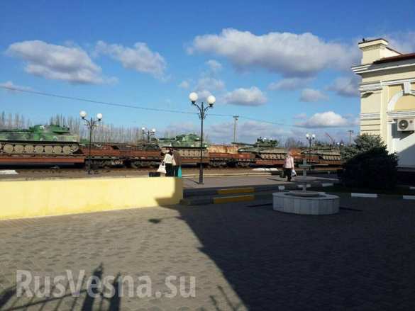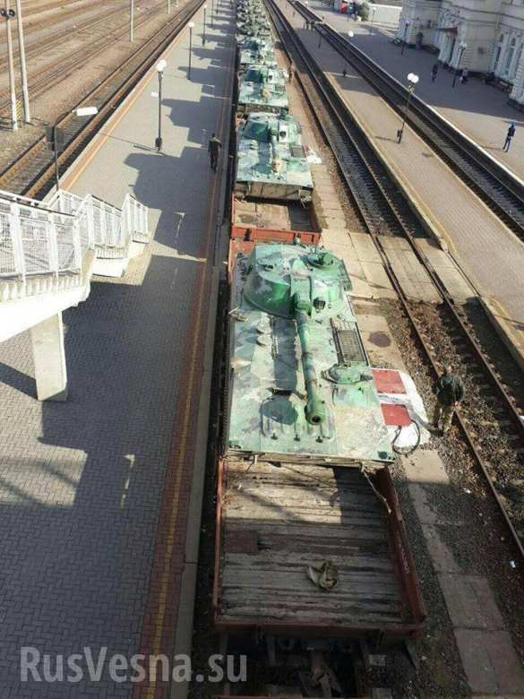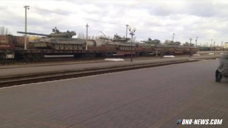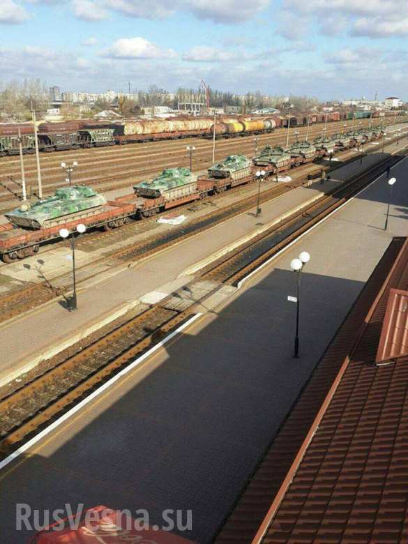 Dazu mehr Fotos http://dnr-news .com/dnr/27355-ukraina-perebrasyvaet-eshelony-tankov-t-80-k-granice-s-krymom-i-na-donbass.html vom Panzer und SAU-Konvoi.